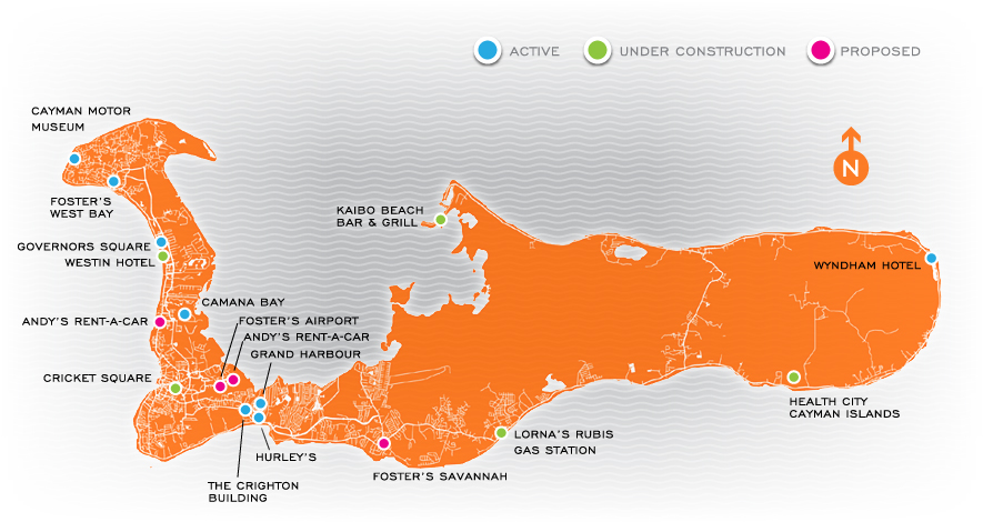 Here you will find the locations of all powering stations for EV's! (Electric Vehicles)